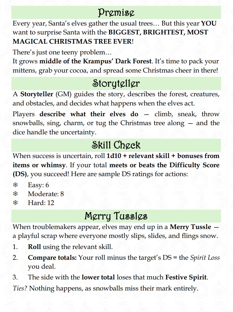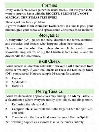 | Tags | Christmas, festive, Narrative, OSR, storygame, Tabletop, Tabletop role-playing game |
